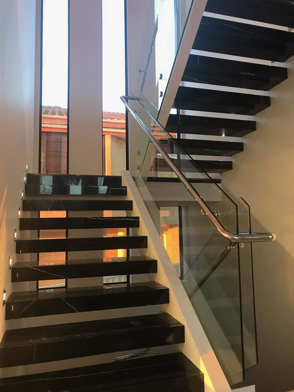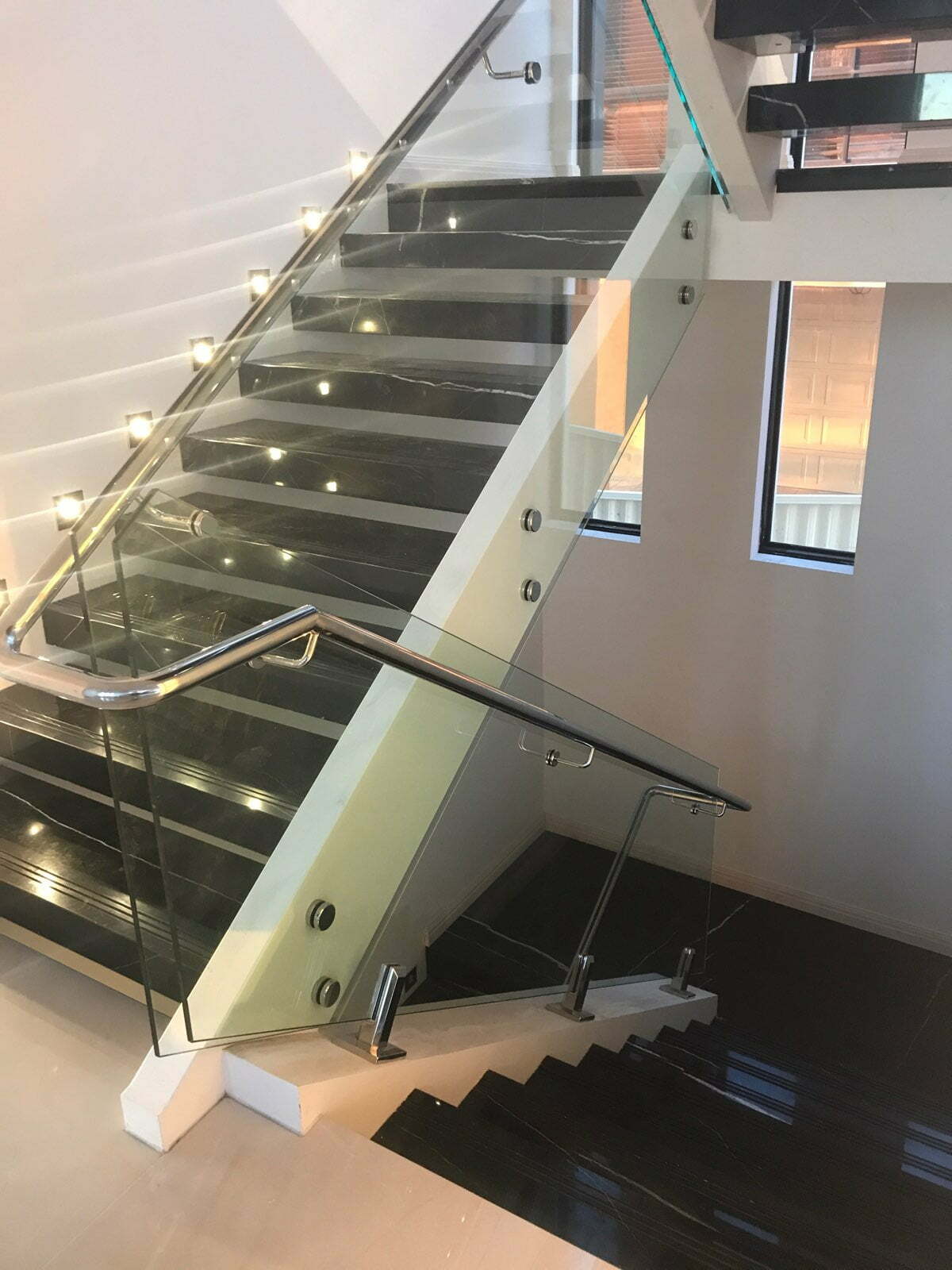 We comply with all Australian standards on our products and have a team of professionals who make the job simple with little disruption to your home. We can design all types of glass balustrades for both your internal and external stairs including features such as: